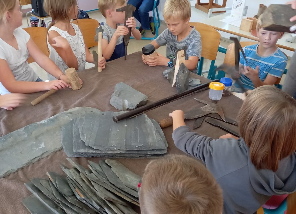 Praktično delo: Pod mentorstvom Bojana Rihtaršiča se boste spoznali z delom mojstra skrila in se lastnoročno preizkusili v oblikovanju skrilastih ploščic.